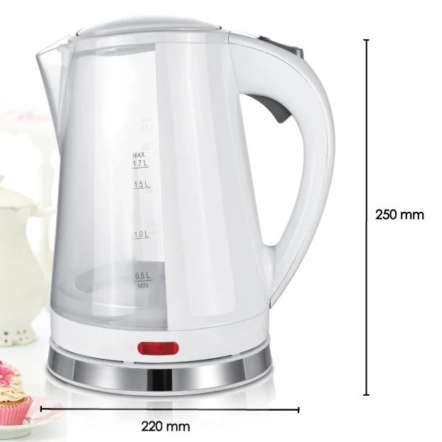 The wireless kettle is placed on the base with a power cord attached to the base. In this way, there is no need for a power cord and the kettle can be easily carried through the large handle, which is very convenient. When the kettle is placed on the base and the switch located on the handle is turned on, the indicator light will light up. When the kettle stops heating, the indicator light will go out. A few seconds after the water boils, or when the water level is below MIN, the automatic safety shut-off function will be activated to prevent further heating.